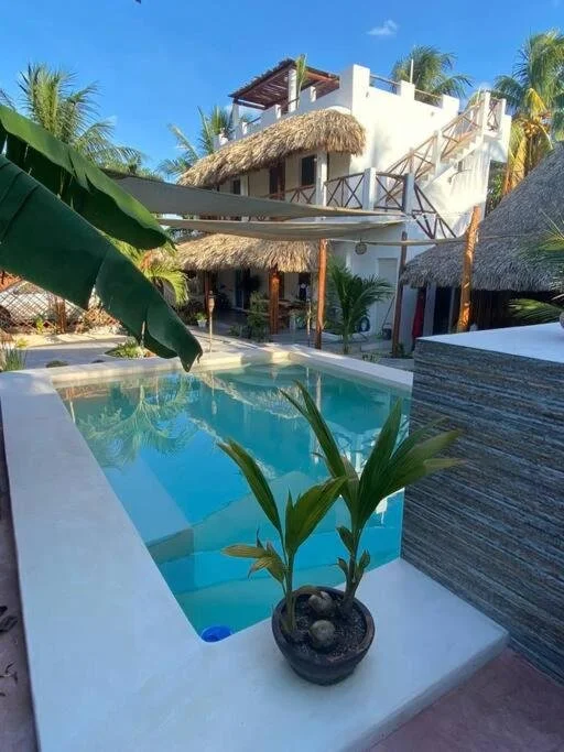 Stay at Casa Om, a gorgeous yoga retreat center just steps from a stunning white sand beach. Experience true luxury with a private pool, sundeck, turtle pond, and rooftop palapa—where relaxation and rejuvenation meet in a peaceful, breathtaking setting.